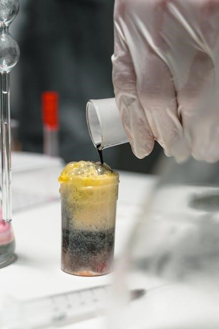 Proper use of laboratory equipment is crucial for conducting safe and accurate chemical reactions. This includes handling glassware‚ measuring instruments‚ and electronic devices with care. Students should learn to calibrate instruments‚ follow manufacturer guidelines‚ and use protective gear. Understanding the function of each tool‚ such as burettes‚ pipettes‚ and thermometers‚ ensures precise measurements and minimizes errors. Regular maintenance and decontamination of equipment are also essential to prevent cross-contamination and ensure reliable results in experiments involving chemical reactions.